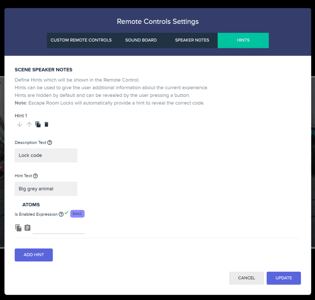 • System that allow experience creators to add “hints” which appear on Remote Controls.