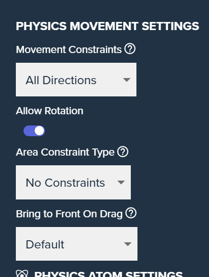 - Constrain to Surface: The draggable may only move around on the surface it has been placed on originally, and may not jump across surfaces.
